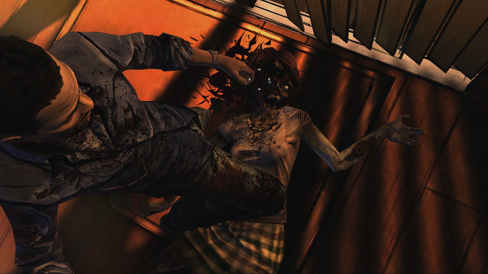 Lee is being transported from Atlanta to prison by a local sheriff when the cruiser strikes a zombie in the road and crashes. Lee escapes the wreck, but is forced to fight off the officer when he reanimates. Injured and requiring help, Lee searches a suburban home of Clementine, a young girl alone save from her now-zombified babysitter; after killing the zombie and learning her parents left for Savannah, Georgia before the outbreak, Lee decides to care for her. The two meet up with Shawn Greene and his friend, and are offered protection at the farmstead home of his father Hershel. There, they meet Kenny, Katjaa, and "Duck". During an accident caused by Duck, Shawn is killed by walkers, and Hershel banishes Lee, Clementine, and Kenny's family from the farm.Reaching Macon, Lee's hometown, Kenny's truck runs out of gas, forcing them to take shelter in a drugstore with other survivors: Lilly, Larry, Carley, Doug, and Glenn. Lee quickly recognizes the drugstore as his family's, but hides this from the group. When Larry suffers a heart attack during an argument, Lee is forced to kill his own undead brother for his keys to the store pharmacy; accidentally setting off the alarm, the store is attacked by walkers from outside, and the group is forced to flee. During the escape, Lee is forced to rescue either Doug or Carley, with the other being overrun and killed. The group takes shelter at a local motel they believe is defensible. Glenn decides to set off on his own to find his friends in Atlanta. As the remaining group take confidence they are safe, the power to the motel and surrounding area shuts off.